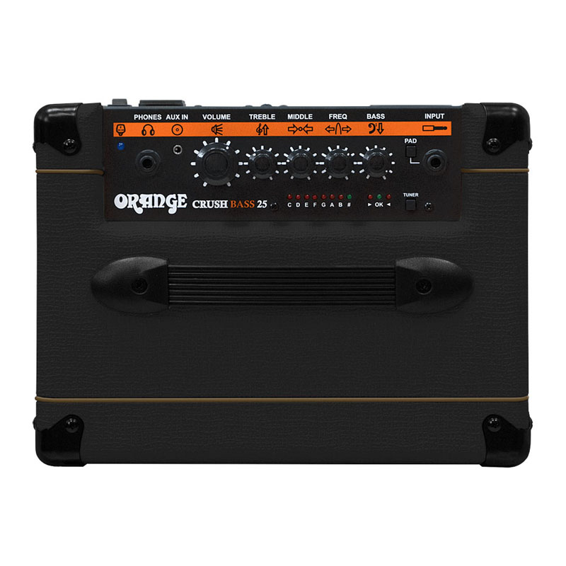 El Crush portátil Pix CR50BXT cuenta con un sintonizador incorporado, salida de altavoz y una entrada AUX para reproductores de MP3 o CD. Orange Crush PiX gama de graves, como nuestros amplificadores de guitarra, cuentan con todo lo que cabe esperar de un amplificador Orange. Desde la limpieza cálida y moderna, pasando por la rutina vintage y hasta el caos distorsionado total, el Crush Bass 50 combina lo esencial de un equipo de práctica con el tono y las características normalmente reservadas para los profesionales. El Crush Bass 50 se inspira en nuestros emblemáticos amplificadores OB1 y 4 Stroke , trayendo algunos de los elementos definitorios de cada uno en un combo compacto.