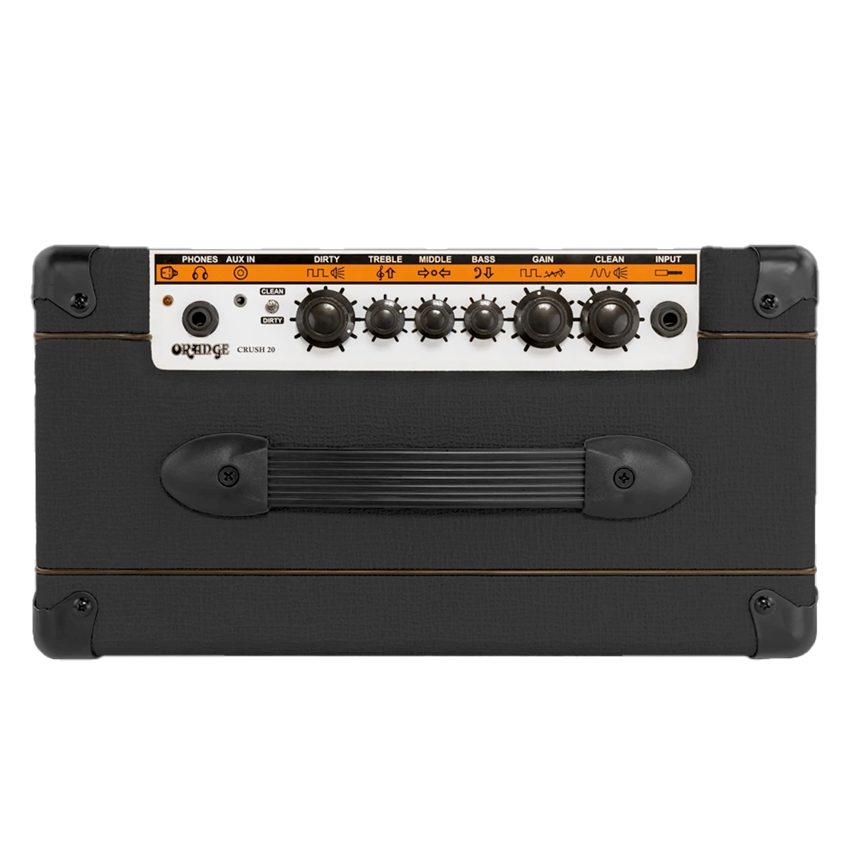 El corazón de este amplificador es su preamplificador de 4 etapas, que ofrece una paleta de sonidos increíblemente amplia. Desde limpios brillantes con el carácter clásico de Orange hasta distorsiones densas y saturadas, el Crush 20 maneja cualquier género con una claridad que desmiente su tamaño. Su diseño de dos canales (Clean y Dirty) permite alternar fácilmente entre texturas mediante el interruptor del panel superior o un pedal opcional.