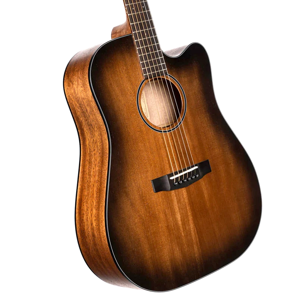 Cuerpo Dreadnought con Cutaway: Su forma clásica garantiza unos graves potentes y una gran proyección, mientras que el cutaway veneciano facilita el acceso a los trastes más altos.