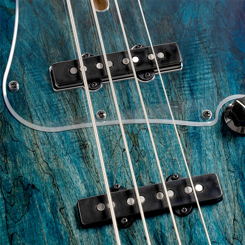 Equipada con un conjunto de pastillas tipo J de alto rendimiento y un preamplificador activo de 3 bandas: