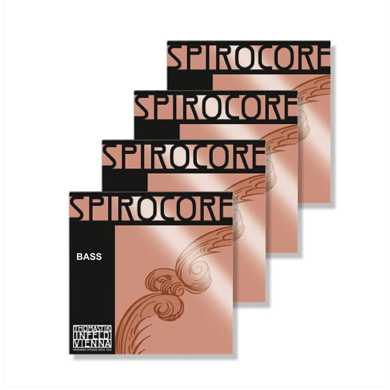 ENCORDADURA THOMASTIK SPIROCORE PARA CONTRABAJO, EN SOL MOD.S43. Las cuerdas Spirocore contribuyen con un avance tecnológico sobre las cuerdas convencionales de ropecore ya que tienen un núcleo de acero en espiral más flexible, creando un periodo más largo de vibración de la cuerda. El núcleo de alta tecnología contribuye a una digitación sin esfuerzo, fácil respuesta de arco, afinación estable y alta durabilidad. El sonido es redondo, balanceado y poderoso. Spirocore es ideal para extensiones de la cuerda Mi. Es bastante favorecida por músicos que utilizan pastillas acústicas.