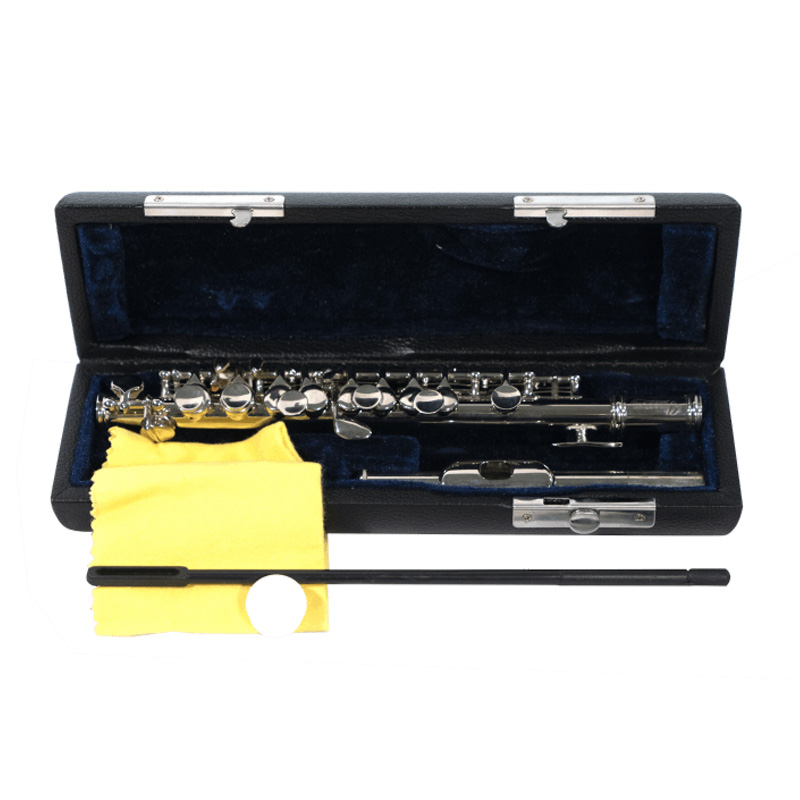 Tiene un sonido Increíble, tiene llaves cerradas y está en DO también tiene un elegante estuche y esta bañada en plata, además tiene un bastoncillo y un paño de limpieza.