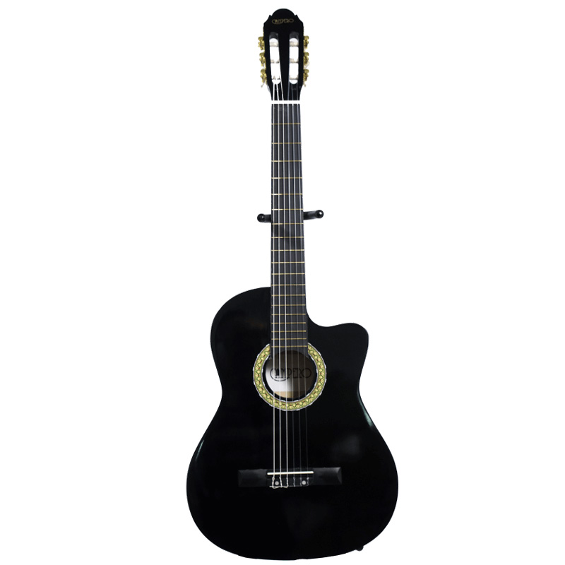 Es ideal para estudiantes o un guitarrista intermedio, sus tapas y costado son de de madera contrachapada, su brazo es de catalpa y diapazón de maple.