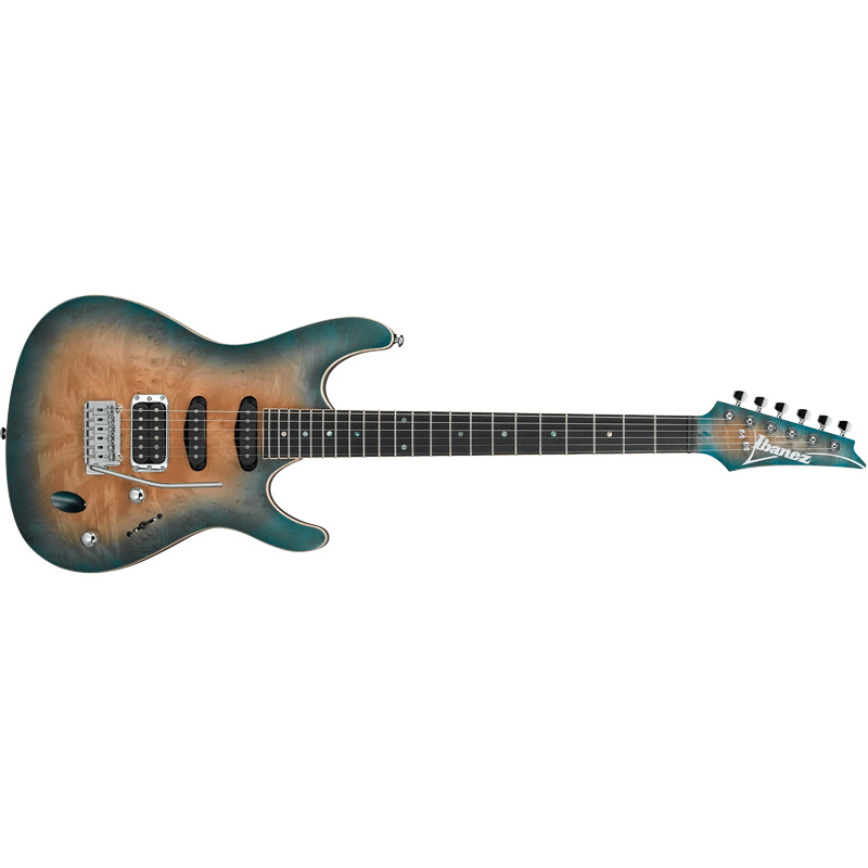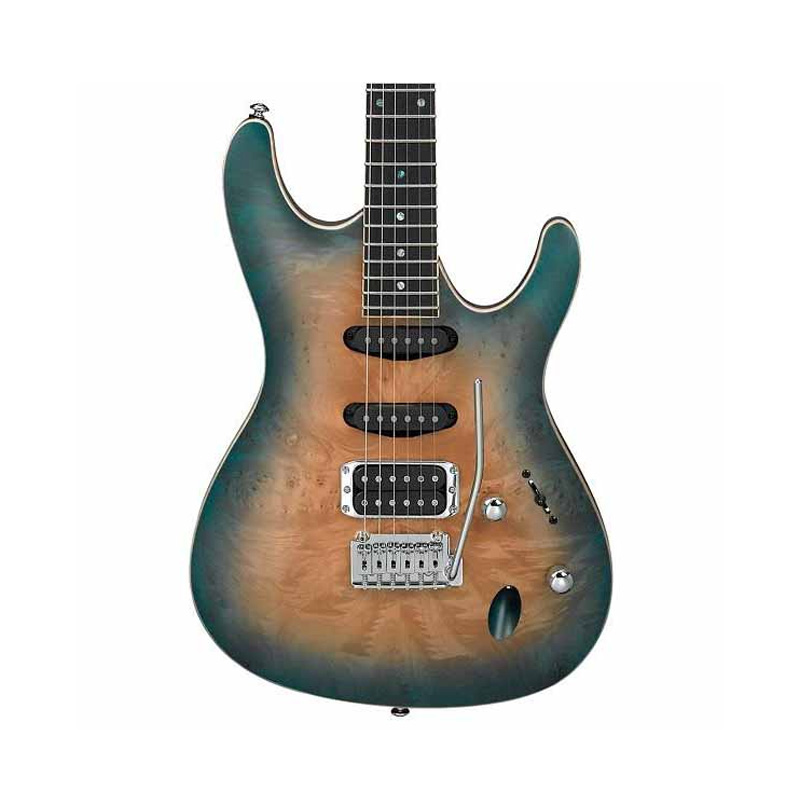 GUITARRA ELECTRICA IBANEZ SA NATURAL SOMBREADO AZUL MOD. SA460MBW-SUB La Ibanez SA460MBW cuenta con una tapa de maple burl con ribete de madera y diapasón de ébano con incrustaciones de punto de abulón, lo cual enaltece la serie de guitarras SA maravillosamente con una forma en 3-D. Las guitarras son lo suficientemente ligeras para brindarte una comodidad asombrosa, son lo suficientemente densas para brindarte el tono y el sustain que esperas de la serie SA.