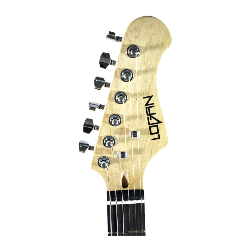 La guitarra eléctrica Logan estilo “Statocaster”, mejor conocida como “Strat” Es una guitarra de doble cutaway, con una forma de “cuerno” superior extendida para mantener el equilibrio. Esta guitarra es uno de los instrumentos para músicos principiantes más versátiles ya que combina un modelo atemporal con detalles contemporáneos. La unión entre mástil y cuerpo es atornillada (Bolt-On). De este tipo de uniones se obtienen tonos brillantes y una resonancia inferior a otro tipo de uniones. Ya que el contacto entre mástil y cuerpo es menor.