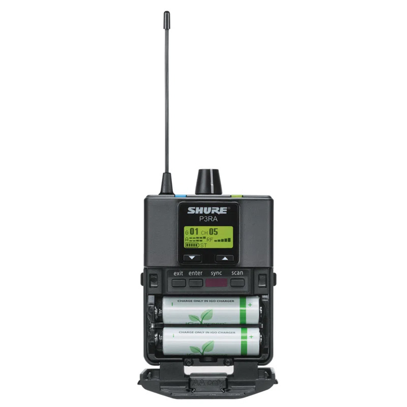 Shure P3RA Premium Receptor inalámbrico Bodypack para sistemas de monitoreo personal PSM300.
