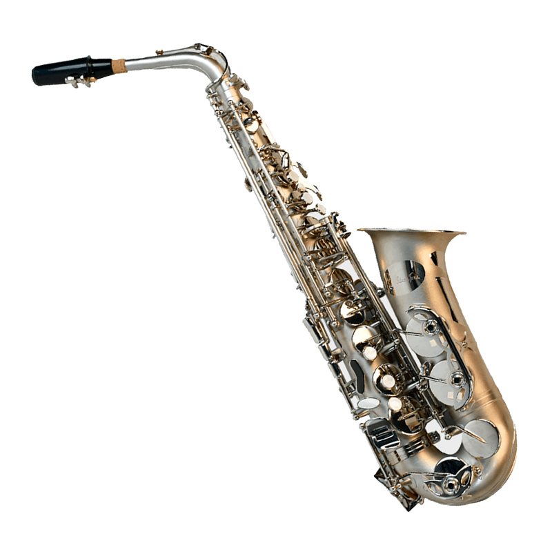 Saxofon Alto Profesional En Mi B (Eb), Terminado Nickelado mate, Materiales del Cuerpo de Laton Baño de níquel mate Terminado, Rango: De Si B (Bb) A Alto Fa Sostenido (F #), Llave Auxiliar De Espatula.