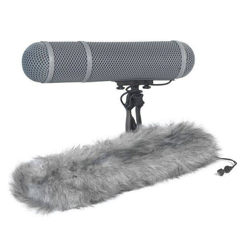 Cápsula paravientos que rodea completamente el micrófono y su conector, y que se desliza hasta el sistema de suspensión. El antivientos de plumilla sintética de alta calidad está diseñado para ajustarse perfectamente al paravientos. Cuenta con un cordón de cierre y un fijador para un ajuste perfecto. El paravientos y el peluche antiviento atenúan hasta 38 dB de ruido del viento.