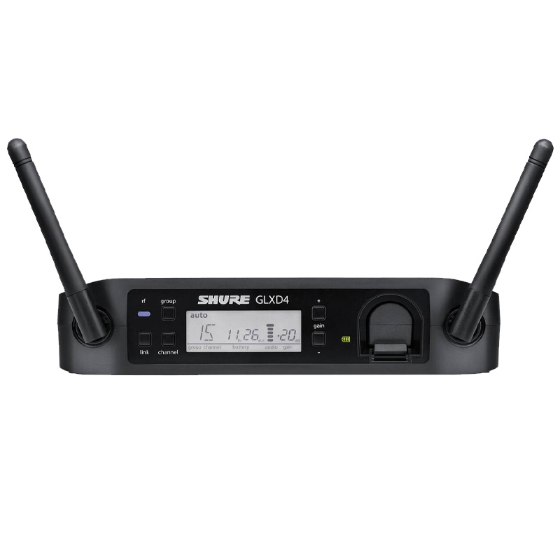 El nuevo sistema inalámbrico GLX-D+ Dual Band para presentador incluye el micrófono flexible cuello de ganso BETA®98H/C diseñado con precisión para instrumentos de metal, viento y percusión, y el receptor GLXD4+. La perfecta combinación de la gestión automática de frecuencias con la nueva tecnología de doble banda proporciona un rendimiento confiable y uniforme, mientras que las baterías recargables de iones de litio de Shure proporcionan hasta 12 horas de uso. Libertad inalámbrica sin complicaciones.