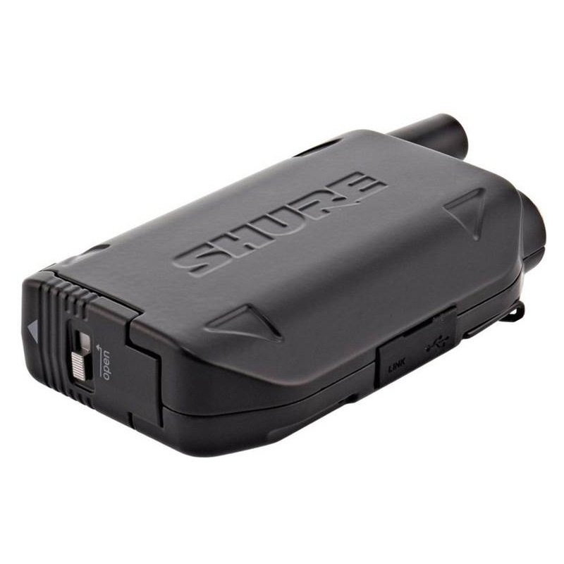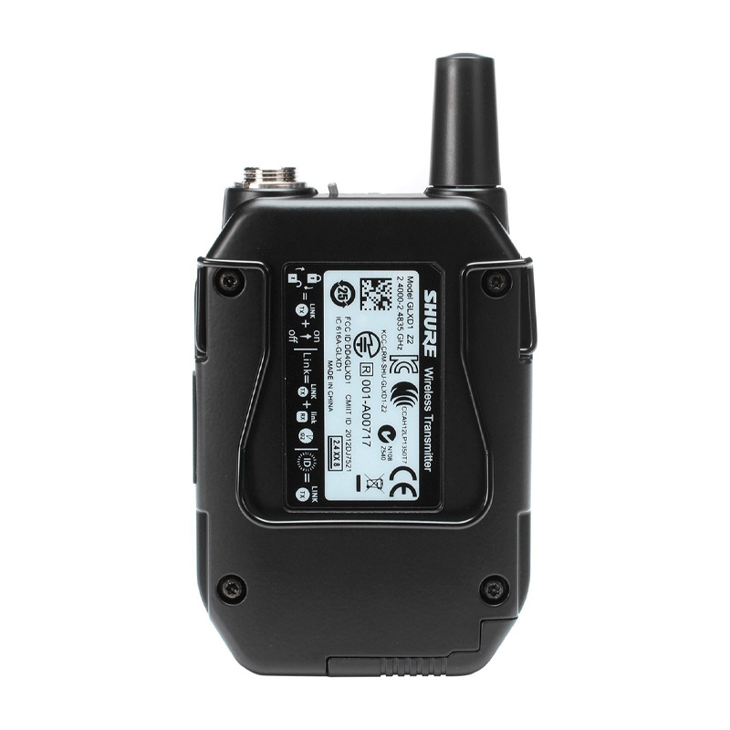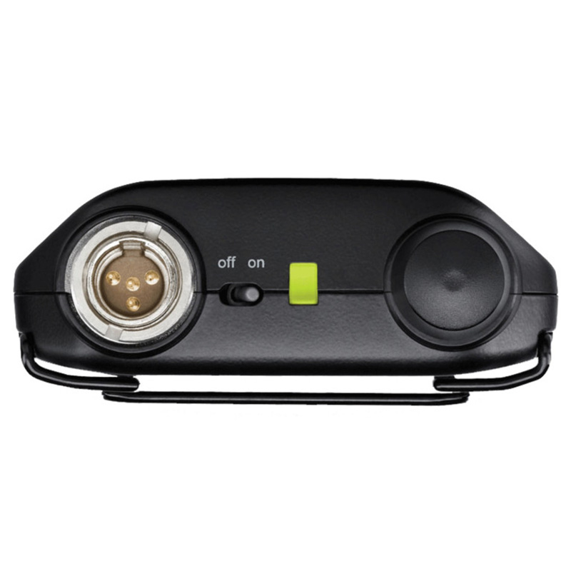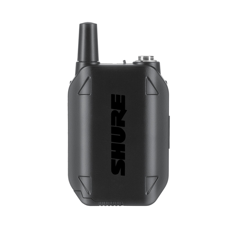 El transmisor bodypack GLXD1+ Dual Band cuenta con un robusto chasis metálico de diseño ergonómico y un clip para el cinturón reversible para poder adaptarlo de forma cómoda y sencilla en cualquier posición. Es compatible con un cable de instrumento y una amplia selección de micrófonos de solapa y de diadema.