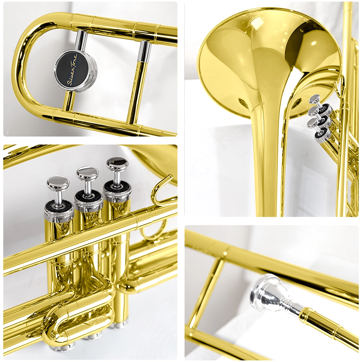 Silvertone SLTB009 | Trombón de Émbolos Afinación Si Bemol (Sib) | Acabado Laqueado Dorado