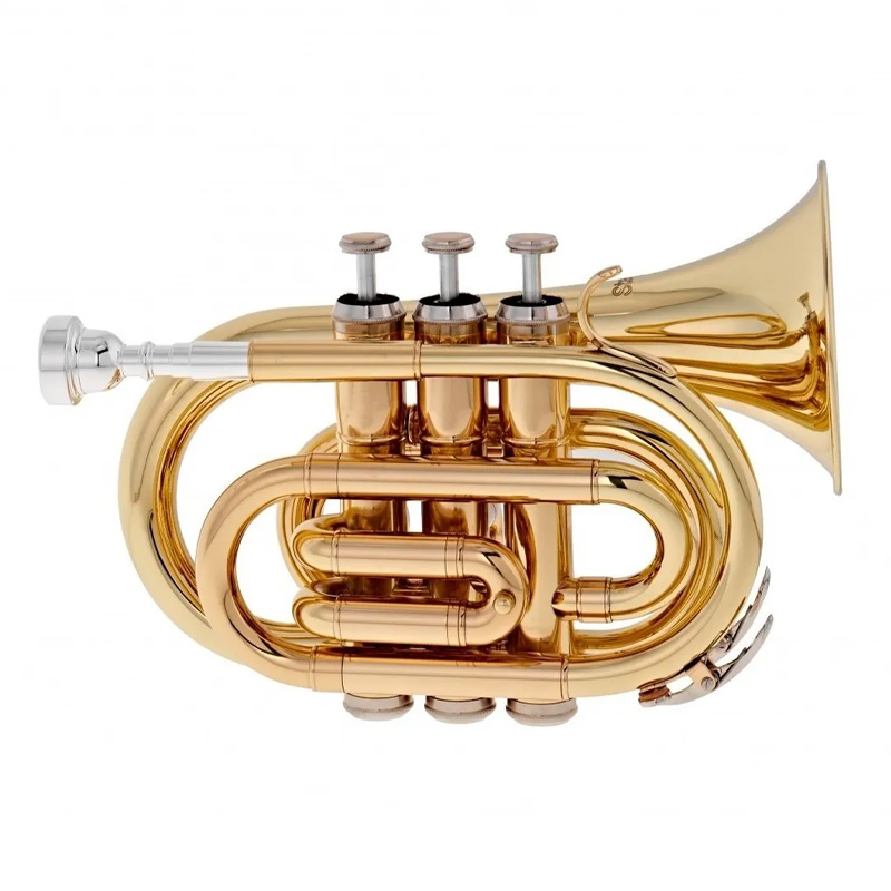 Trompeta Piccolo en si bemol marca Blessing. Los instrumentos de Blessing están diseñados para que se pueda desarrollar un buen sonido y una técnica adecuada, elegidas por estudiantes principiantes hasta profesionales ya que satisfacen los estándares de calidad, son ergonómicos y cómodos de tocar. Hecha en latón con acabado laqueado. Incluye estuche